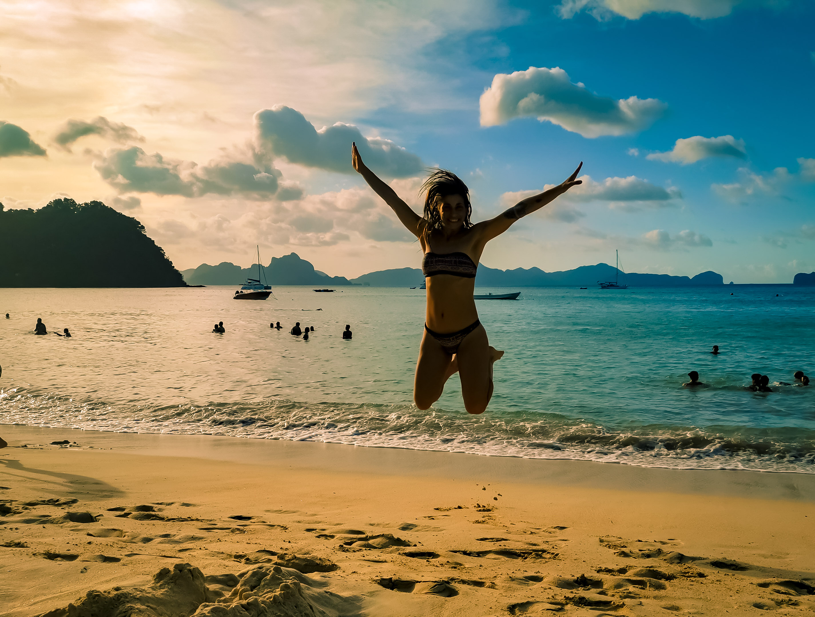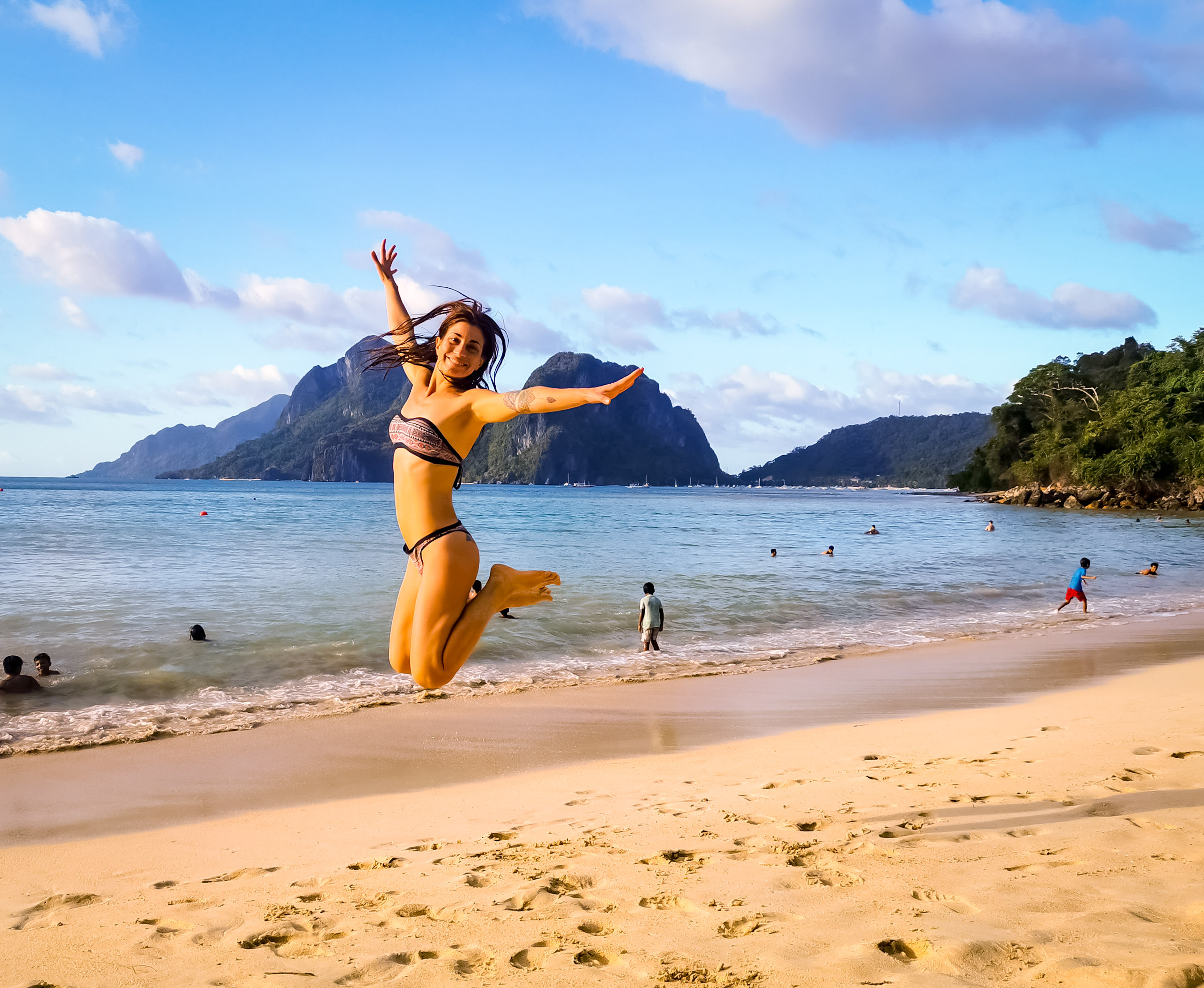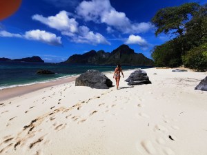 Ogni spiaggia sarà una scoperta. Ognuna dista circa 10 – 15 minuti di pagaiata dall’altra e guardate bene la posizione del sole per capire quando visitare le varie calette ed evitare l’ombra. Sarà tutto uno spettacolo: insieme alla splendida sabbia bianca potrete vedere una ricchissima barriera corallina, picchi montani e vegetazione di ogni tipo. In una giornata, se non soffia troppo forte il vento, riuscirete a fare tutto il giro del promontorio: la spiaggia più lontana è quella sulla punta, dopo la quale tornate indietro e non proseguite per El Nido altrimenti non riuscireste più a tornare indietro. Immergetevi con maschera e boccaglio a ogni spiaggia e buono spettacolo!