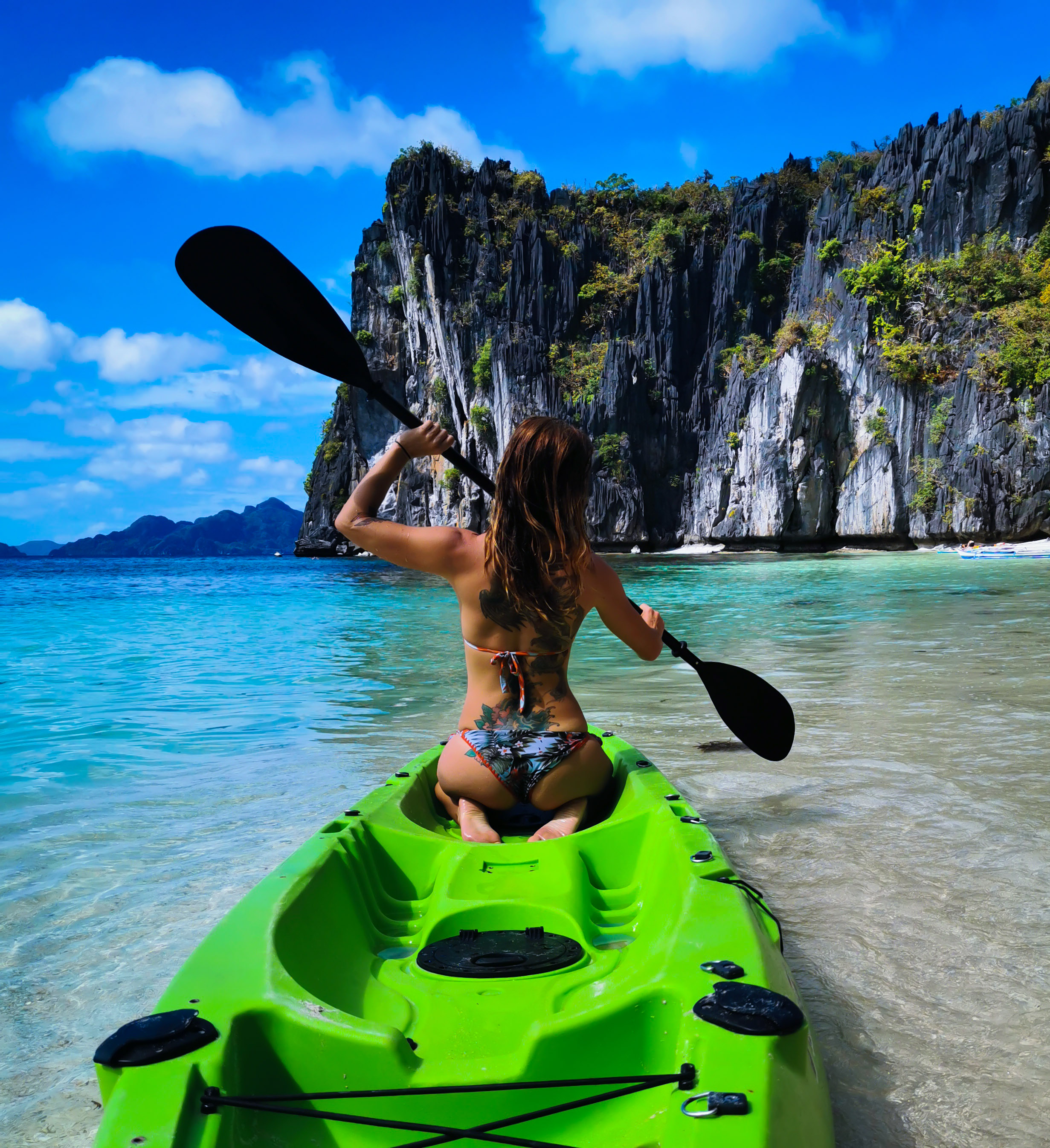 Sulla spiaggia di Corong noleggiate un kayak e partite alla scoperta delle tante spiagge di sabbia bianchissima che si nascondono nel promontorio davanti a voi, che separa Corong dal Nido. Un kayak per due persone costa circa 600 pesos per un giorno intero ed è molto facile da guidare, anche se soffia molto forte il vento è bene stare attenti a non allontanarsi troppo. Comprate anche una borsa impermeabile per i vostri affetti e soldi, perché vi si bagnerà tutto, garantito. Se la comprate nei negozi costa meno che dai venditori abusivi in spiaggia, anche se dovrebbe essere il contrario. Munitevi prima quindi di una borsa, tanto sarà un investimento che vi durerà per tutta la vacanza (in Palawan si vive in barca).