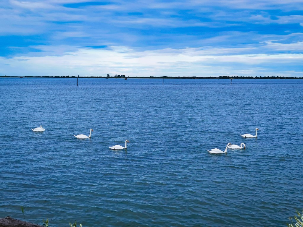 Il ritorno verso Albarella (LEGGI QUI) si può fare in tanti modi. Il tragitto più lungo è quello che passa per Ca’ Venier e poi confluisce sulla ciclabile dei leprotti, ovvero un argine ztl dove le lepri corrono libere per strada (e bisogna stare attenti perché non sanno andare dritte!). Lungo questo percorso che porta fino a Porto Viro si possono osservare veri e propri stormi di uccelli che chiacchierano tra loro mentre scelgono su quale albero dormire. Tantissimi anche i campi di pioppi, piantumati per il ripopolamento della Zona.