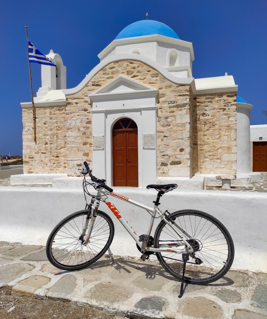 L’isola di Paros non è molto grande, in circa 60 km farete il giro ad anello di tutta l’Isola (per godervi le spiagge vi consiglio di dividerla in più giorni). Il dislivello c’è, essendo comunque un’isola montuosa, ma non è così impegnativo, raggiungendo al massimo vette di 250 metri. Le salite però sono abbastanza pendenti se si abbandona la strada principale, quindi fatelo solo quando state puntando a una spiaggia ben precisa.