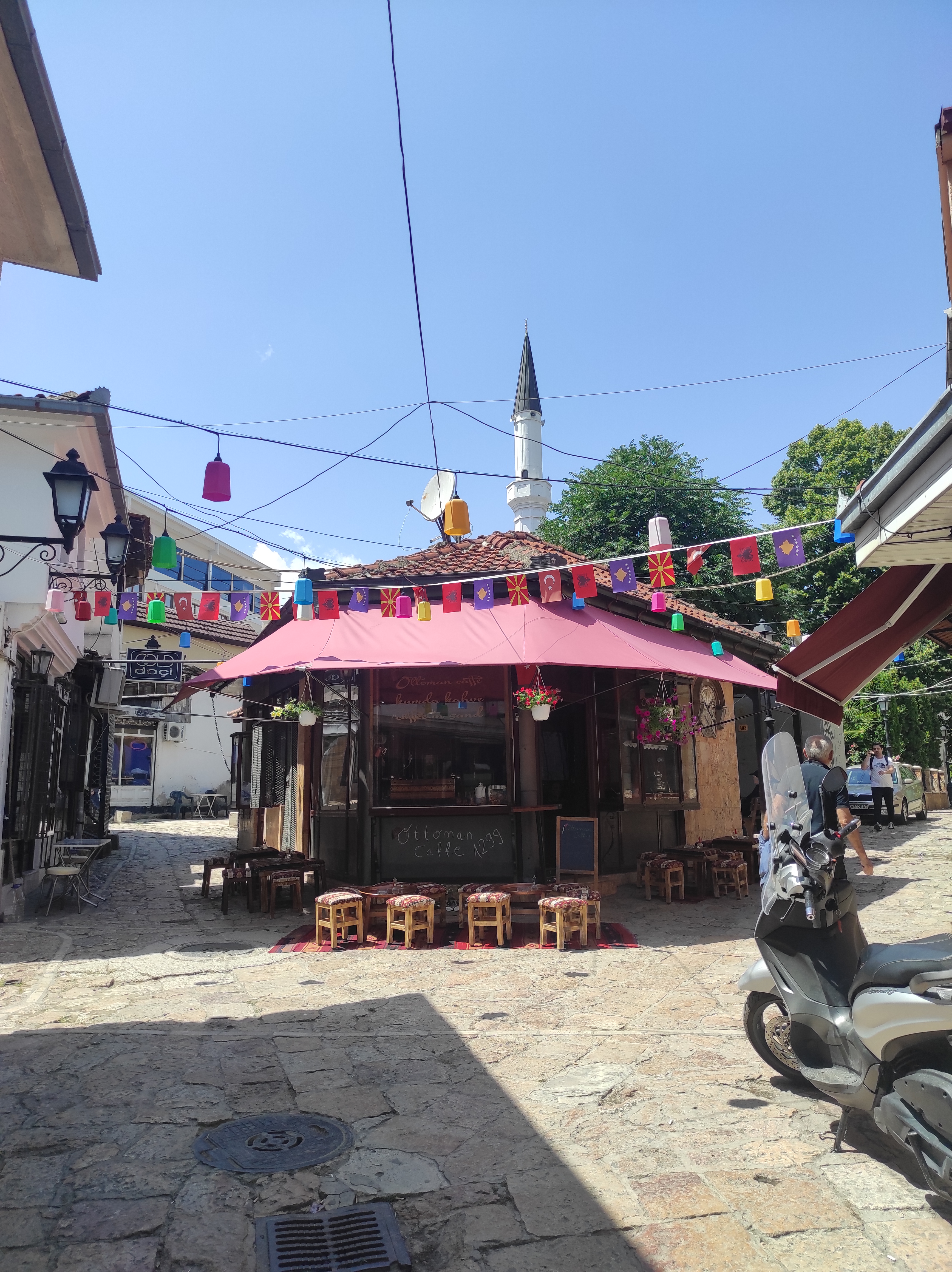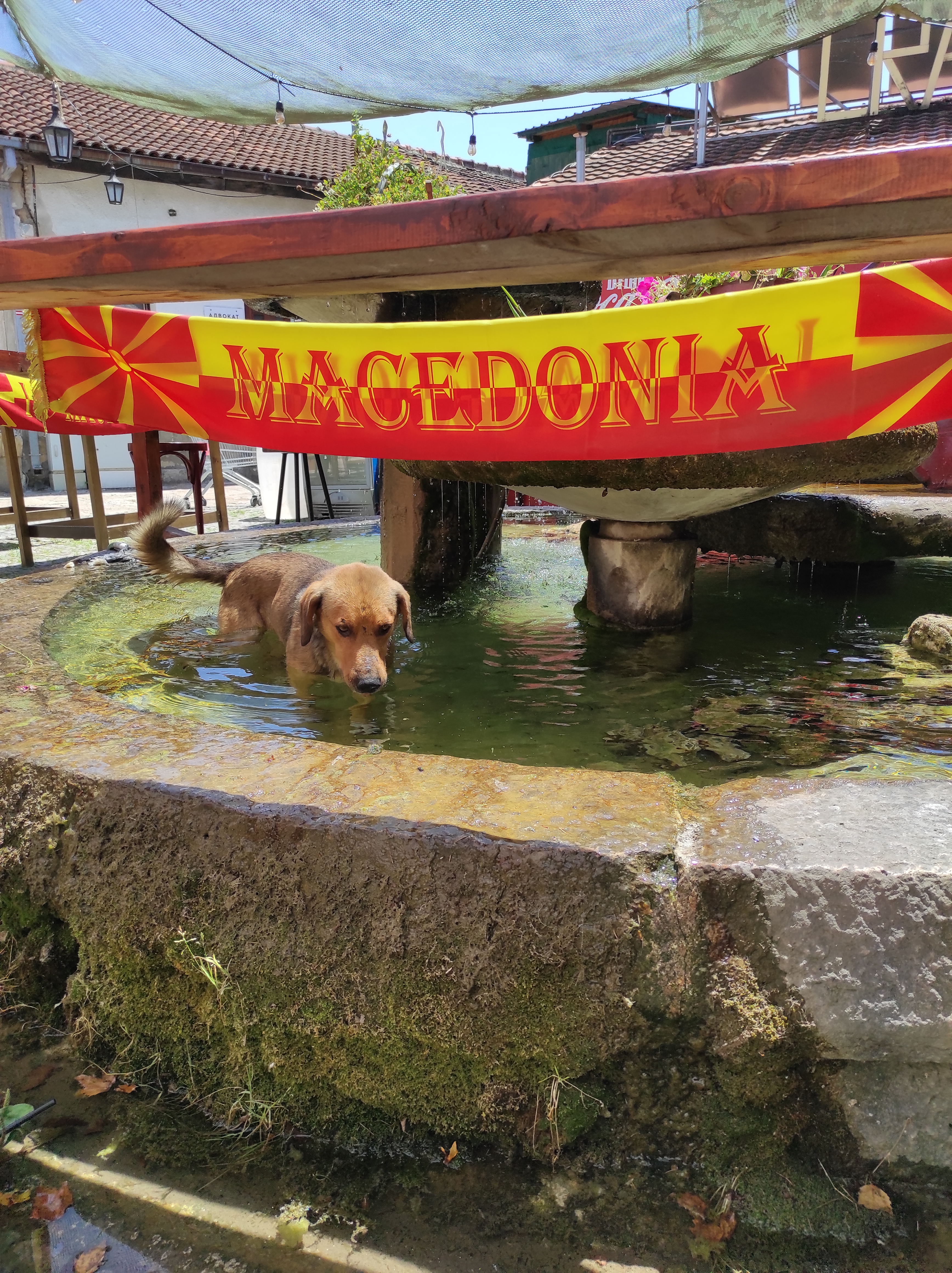 Arrivare dall’aeroporto alla città è molto semplice: 20 km di strada, quasi tutta asfaltata, senza dislivello. E già da lì inizierete ad assaporare cos’è la Macedonia e il suo mix di stili: bar e parchi pieni di persone che chiacchierano, animali che vi salutano, volti dai lineamenti molto diversi tra loro. Piccolo approfondimento per tutti coloro che vogliono viaggiare in bici in Macedonia: le strade sono tranquille, le auto molto veloci e bisogna prestare attenzione come un po’ ovunque, ma nulla di infattibile. C’è molto dislivello (considerate che è un paese montano) e, d’estate, si possono raggiungere tranquillamente i 40 gradi: scegliete strade alberate o comunque evitate di viaggiare dalle 13 alle 15. Ci sono molti cani randagi, ma cercano solo cibo, non attaccano l’uomo.