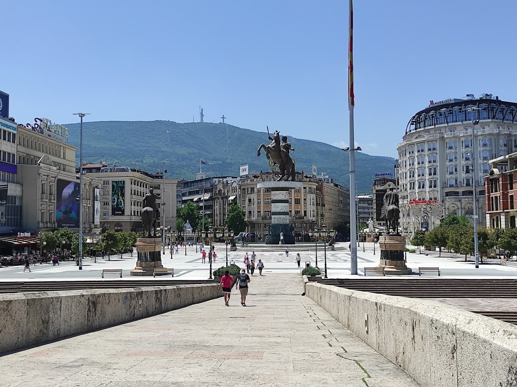 La prima tappa di cui vi parlerò è quindi Skopje, la capitale. Una città abbastanza piccola e semplice da girare, soprattutto in bici, con un centro storico “nuovo” esteticamente prorompente (si viene accolti da una fontana gigantesca raffigurante Alessandro Magno a cavallo), circondato da edifici neoclassici recentemente ricostruiti che ospitano i musei più importanti della città, e un centro storico “vecchio” con tanto di mercato orientale, bazar e negozi di oro, con vie a gradoni lastricati. Due cuori separati dal fiume Vardar, che attraversa la città seguito da una bellissima ciclabile percorribile a qualsiasi ora del giorno e della notte.