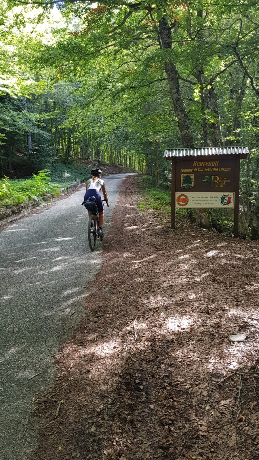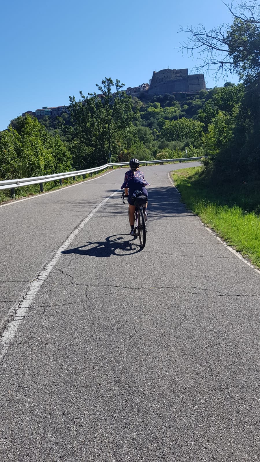 Non c’è dubbio che dopo una giornata di fatica, inforcare la bici per fare circa 20 km di discesa sia un vero spasso (al di là delle buche sulla strada a cui prestare sempre molta attenzione). I panorami, proseguendo verso la città di Rotonda, iniziano a cambiare facendosi meno boschivi e più verdi, addomesticati dall’uomo. L’orizzonte è sempre più esteso, fino a vedere varie cittadine una più bella dell’altra: Viggianello (arroccata in cima a uno spuntone di roccia), Gaglione e la mia meta: Rotonda.
