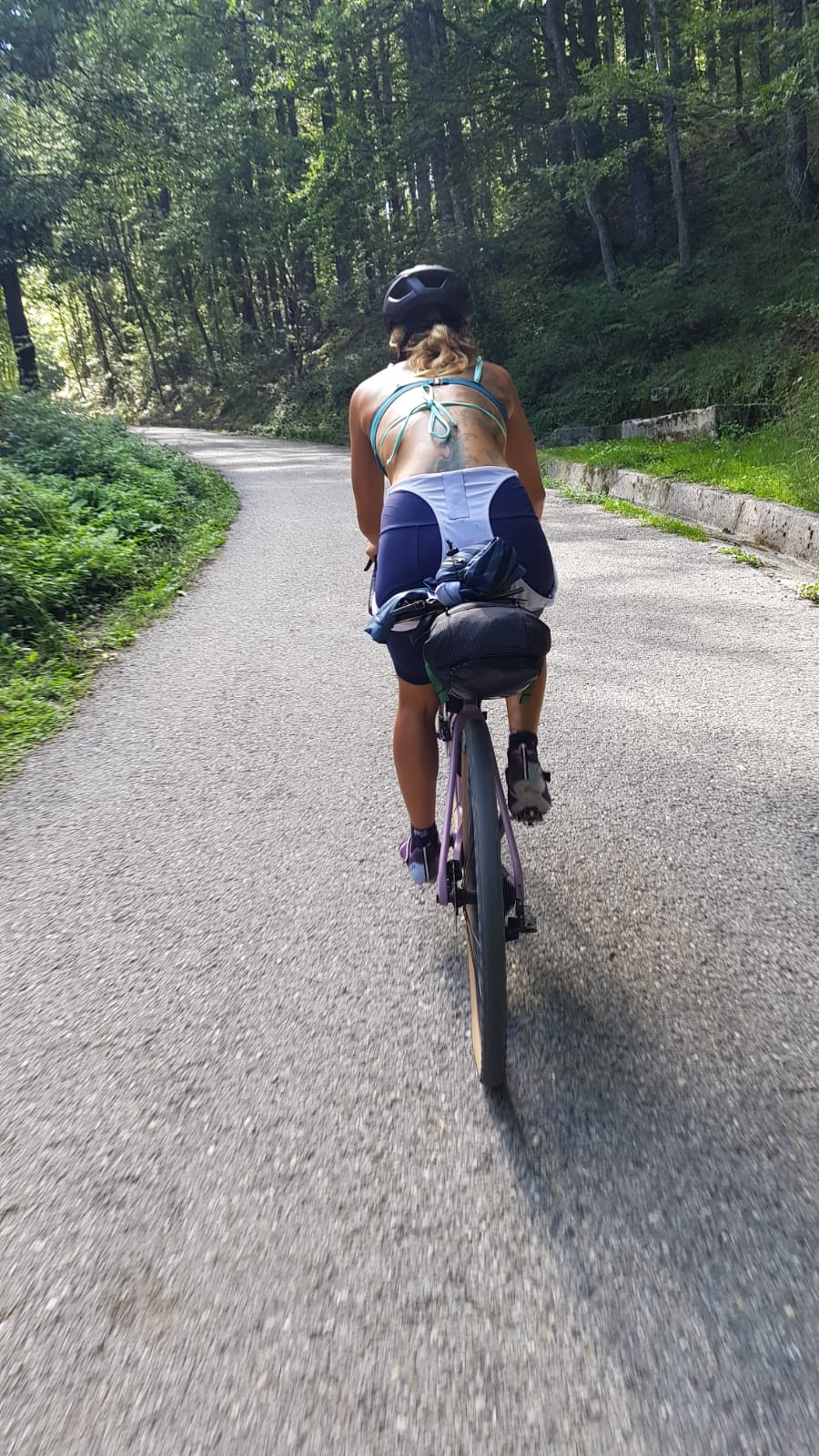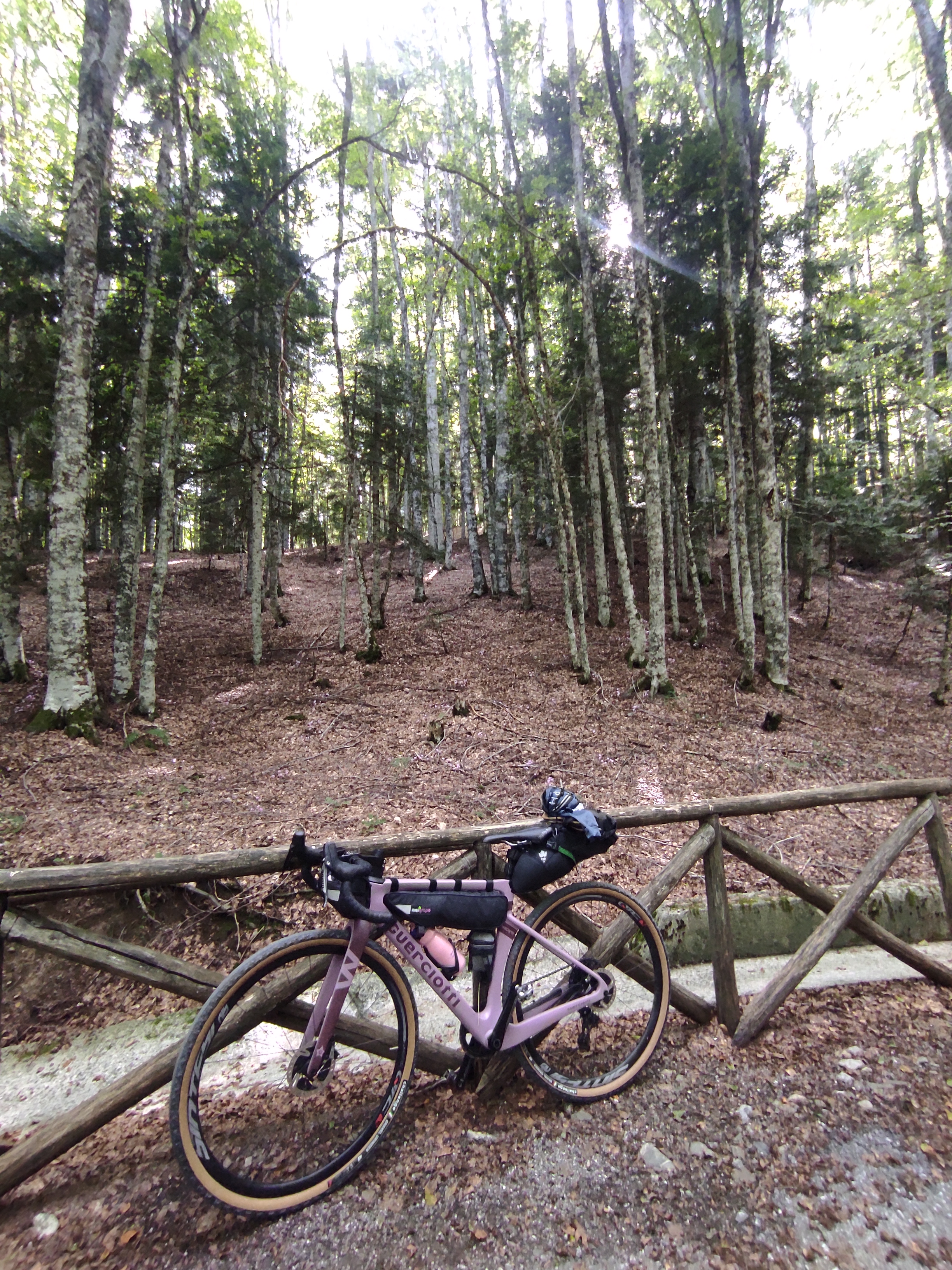 Da qui proseguite verso Acquatremola in un saliscendi (più sali che scendi) di stradine in mezzo a boschi, pascoli, animali di ogni genere. E anche ponti assai caratteristici. Ogni 5 km c’è un bel vedere sui monti del Pollino, che vi lasciano a bocca aperta per la varietà di panorami, kanyon e vegetazione che propongono. Fino ad Acquatremola, appunto, dove invece vi troverete immersi in un meraviglioso bosco di faggi, circondato da fiori viola e sorgenti d’acqua. Qui sembra di essere davvero nel regno delle fate, anche se la salita non dà tregua: in questo punto ero quasi già a duemila metri di dislivello attivo. Da qui partono varie passeggiate a piedi e per fortuna è il punto più alto dell’itinerario: al di là di piccole salitelle, scavallata Acquatremola inizia la discesa!