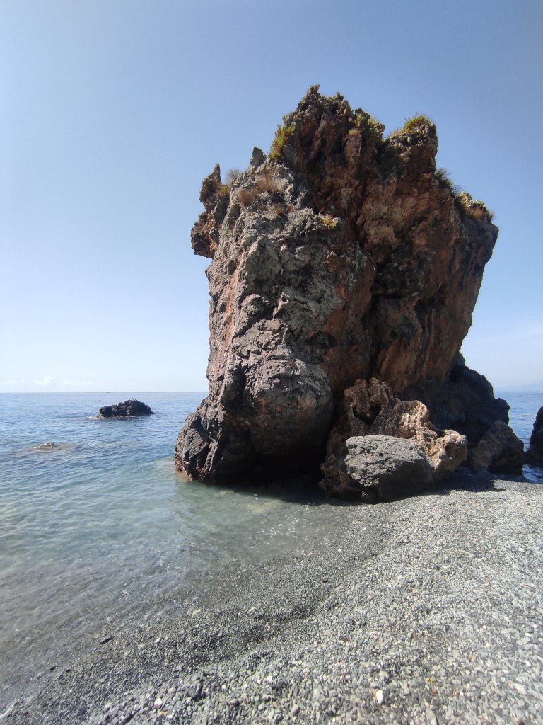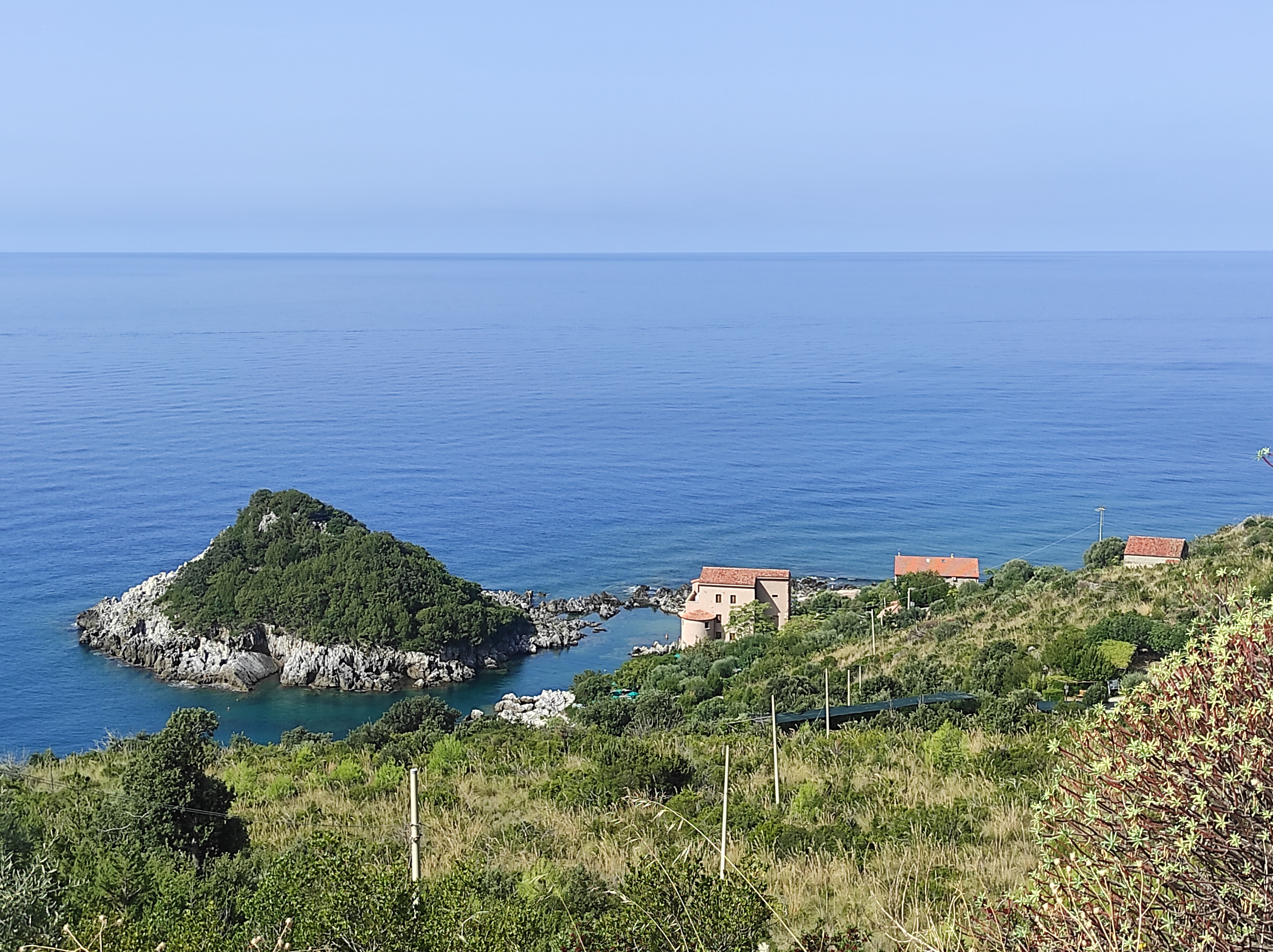 Arrivati sulla costa inizia il relax: qui le pendenze sono veramente dolci (sempre un saliscendi, ma al massimo del 3%), salvo quando si raggiunge proprio la spiaggia che bisogna scendere e quindi poi risalire un bel po’. La costa tirrenica della Basilicata è un susseguirsi di meraviglie. Arrivando da sud si incontra prima la grande spiaggia di A Gnola, forse la meno carina ma sicuramente la più larga ed economica (soprattutto per dormire, gli hotel a Maratea hanno dei prezzi folli… Molto meglio pernottare qui e poi spostarsi). Si sale fino alla pittoresca La Secca, piccolo incavo dove si può nuotare e fare snorkeling attorno a un isolotto. Salendo ancora di qualche km si incontra la spiaggia che più mi è piaciuta: Cala Ficarra o Spiaggia d’A Scala. Per raggiungerla bisogna scendere infatti una scaletta, ma da qui si apre un panorama fantastico di calette, grotte e scogli dove fare snorkeling, osservare pesci, esplorare anfratti scavati nella roccia che ricreano veri e propri edifici.