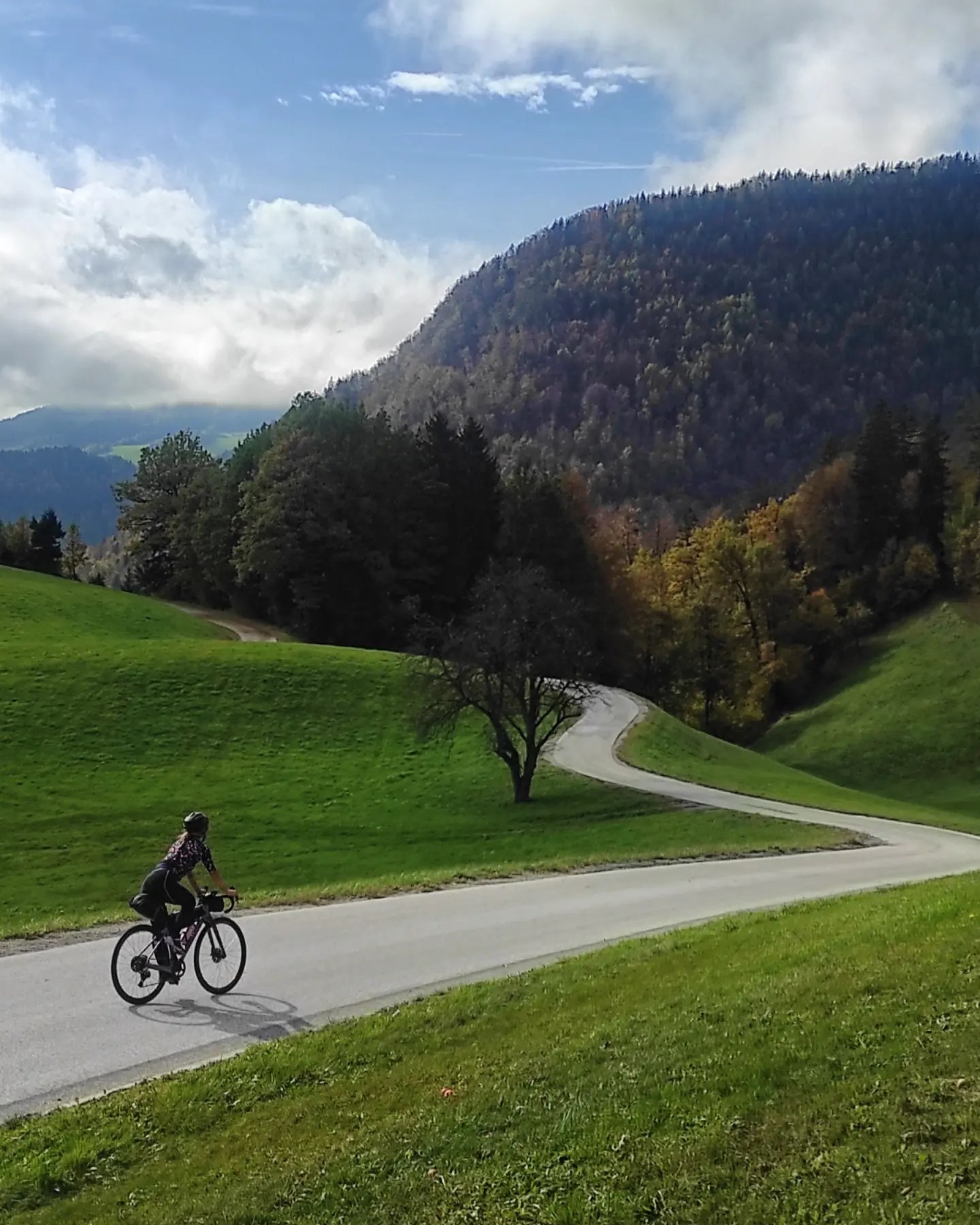 Da Prevalje è iniziata la tappa più dura, verso Lubiana: 110 km con circa 1500 di dislivello. Due le salite “stoiche”: la prima la si incontra subito e dura circa 10 km, seguendo la strada per Mezica. I tornanti sono morbidi, con poca pendenza, e non vi farà percepire molta fatica. Da qui, poi, inizia lo spasso: una dolce discesa vi condurrà in mezzo ai boschi, per farvi scoprire laghi, foglie colorate, strade che compaiono magicamente, sterrati divertenti in un sali scendi che vi riempirà il cuore. Impossibile parlare di direzioni è città: qui non esistono. Vi pubblico la traccia così potete lasciarvi ispirare, ma ogni strada è veramente immersa nella natura.