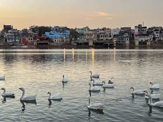 Tutta Pushkar comunque è considerata una città sacra: il lago infatti è circondato da suggestivi Gath – gradinate che si immergono nel lago – dove le persone fanno abluzioni di giorno, mentre di sera si accendono di luci colorate e sui loro gradini si raggruppano tantissimi giovani con bonghi e musica dal vivo. Non ce n’è uno più bello dell’altro, visitateli tutti, tanto per fare il giro del lago basta un’oretta. E ricordatevi che si entra sempre scalzi!