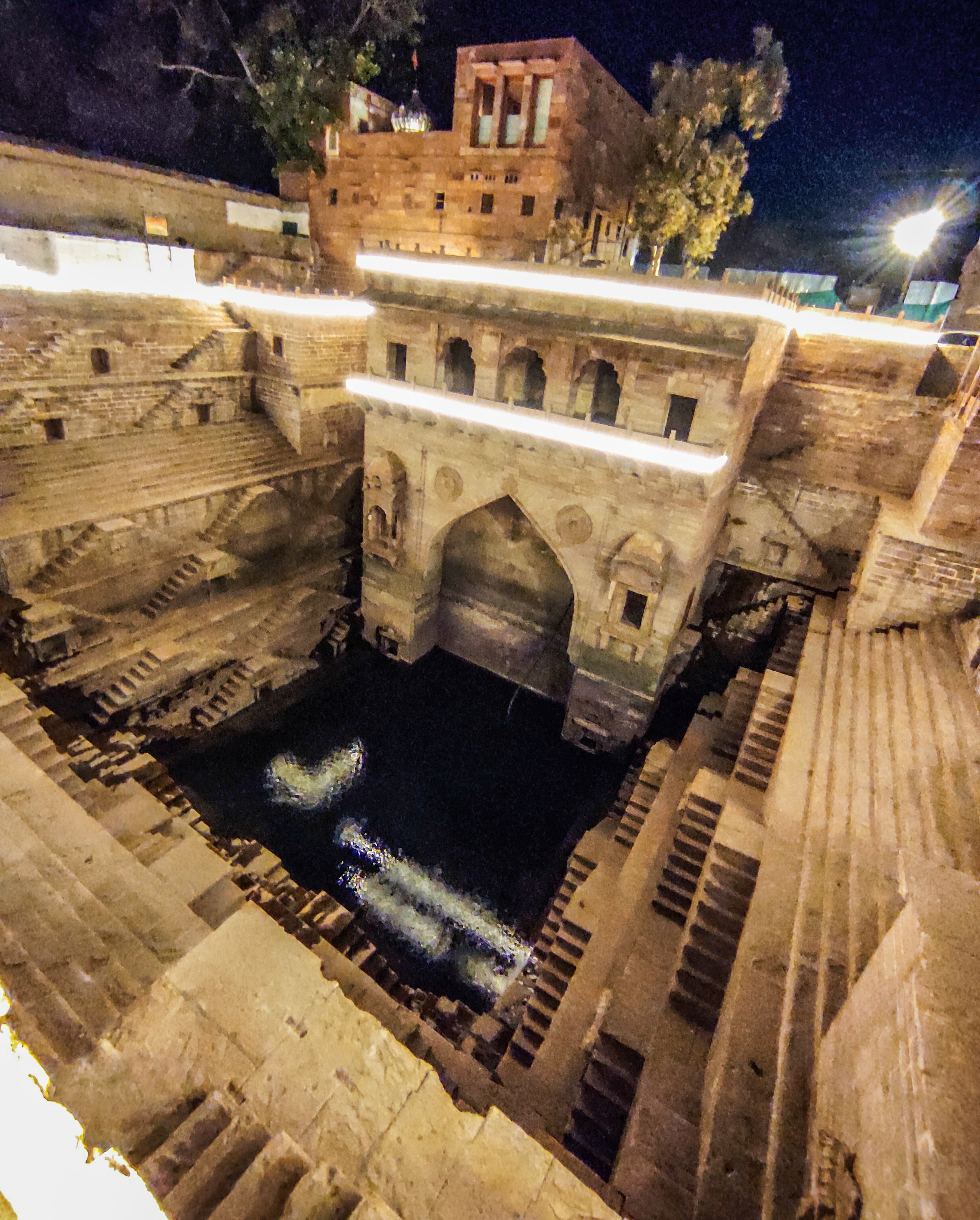 Come dicevo, Jodhpur non è molto grande: per visitare il suo centro basta un pomeriggio. Tante piccole viuzze si snodano a partire dall’attrazione principale, la grande Torre dell’orologio, posizionata proprio al centro della zona dei bazar. Oltre a poter acquistare di tutto, dalle pashmine ai sahri, dai gioielli alle spezie, è divertente gironzolare per i vicoli non ancora troppo turistici e vedere come sono state colorate case, palazzi e piccole botteghe di blu. Nel cuore della città vecchia, inoltra, svetta – o meglio sprofonda nel sottosuolo – un’altra meraviglia: la piscina a gradoni Toorji Ka Jhalra Bavdi che un tempo serviva a raccogliere l’acqua piovana per la città e ora è meta di turisti, giovani e curiosi che si danno appuntamento a qualsiasi ora del giorno e della notte – con tanto di chitarre -per gustarsi il panorama. La piscina è infatti circondata da bar, rooftop e ristoranti, rigorosamente blu, che regalano una fantastica vista sul forte. Per mangiare, dormire e/o fare qualsiasi sosta ristoratrice io vi consiglio proprio di scegliere una struttura in questa zona, perché è davvero un piacere per gli occhi. Io, ad esempio, ho dormito a The Hosteller Jodhpur, che vanta un rooftop pazzesco per soli 7 euro a notte. Un ristorante di altissimo livello, con vista magica e romantica, ma anche con i prezzi un po’ più elevati rispetto alla media (15 euro per una cena con birra) è il Heritage Kuchaman Haveli.