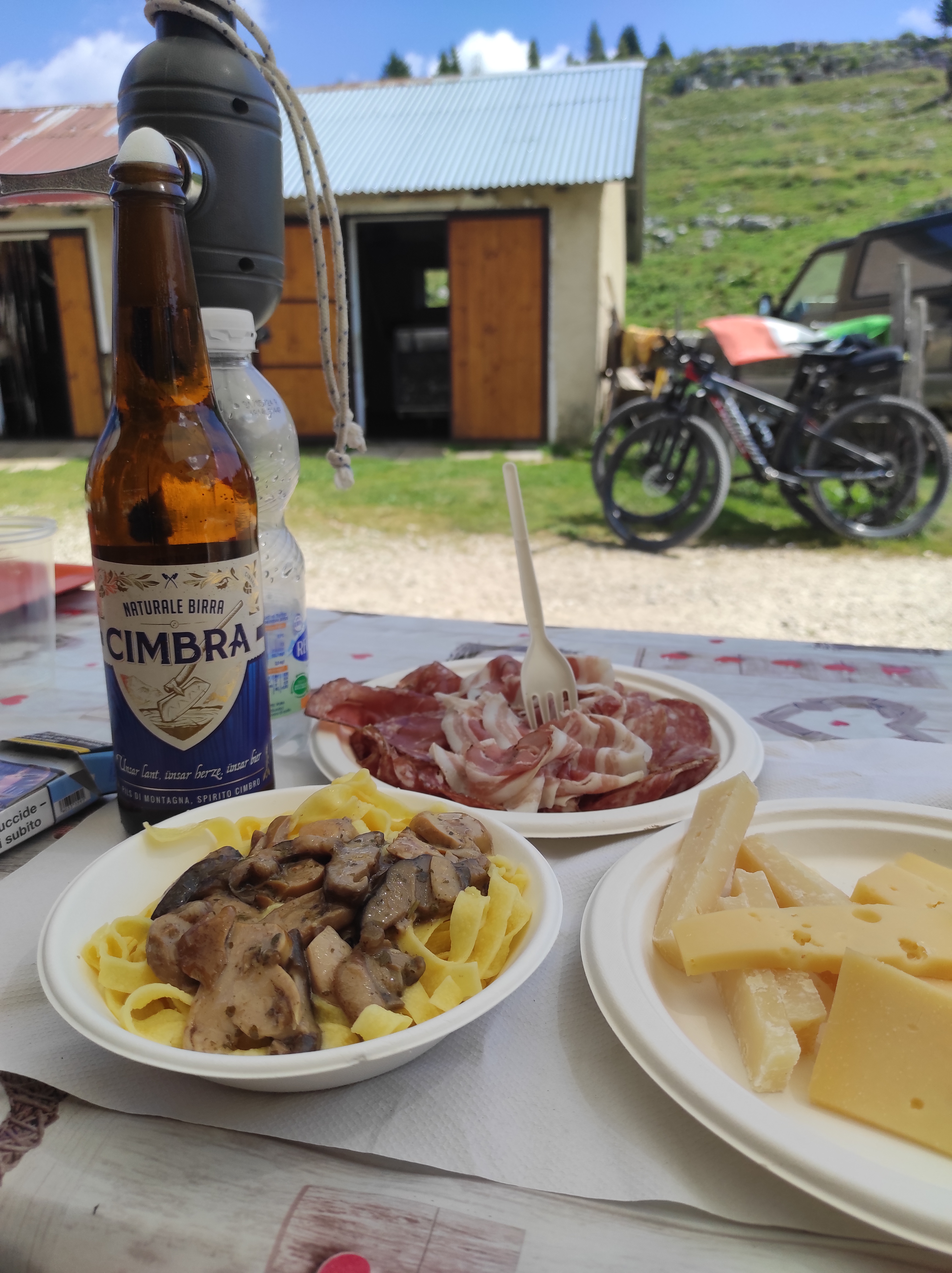 Il punto di partenza è Casa Sant’Antonio, tra Asiago e Gallio, dietro all’aeroporto. Qui si può lasciare comodamente l’auto e iniziare una facile camminata su strada bianca (fattibile anche in bici) per circa 2,5 km tra tornarti, alberi e piano piano bosco. Un piccolo antipasto di cosa attenderà poco più avanti: la natura è già spettacolare, ma purtroppo in questa strada transitano ancora auto che rovinano l’atmosfera. Ad un certo punto si incontra la croce di Sant’Antonio e qui il sentiero si biforca. Si può scegliere se girare subito a sinistra e prendere un sentiero (un po’ più ostico) per raggiungere il Cimitero della Brigata Sassari (in circa mezz’ora) e poi il monte Zebio, o proseguire lungo il sentiero principale per girare a sinistra dopo 10 minuti. Io vi consiglio di proseguire e girare a sinistra più tardi: in questo mondo potrete percorrere un sentiero avventuroso tra le rocce, ovviamente in salita, molto divertente e spettacolare per altri 2 km, fino a raggiungere la vetta del monte dove ammirare mansuete mucche al pascolo vicino al bivacco dell’Angelo. Qui inizia un panorama spettacolare fatto di prati verdi e rocce che con un sentiero più semplice vi condurrà fino alla malga Zebio, dove potrete assaggiare il formaggio ricavato dal latte delle mucche che avete appena incontrato. Il produttore è Egidio, l’anziano proprietario della Malga, che ancora ogni giorno vuole fare il proprio formaggio d’Alpeggio (ovviamente Asiago DOP).