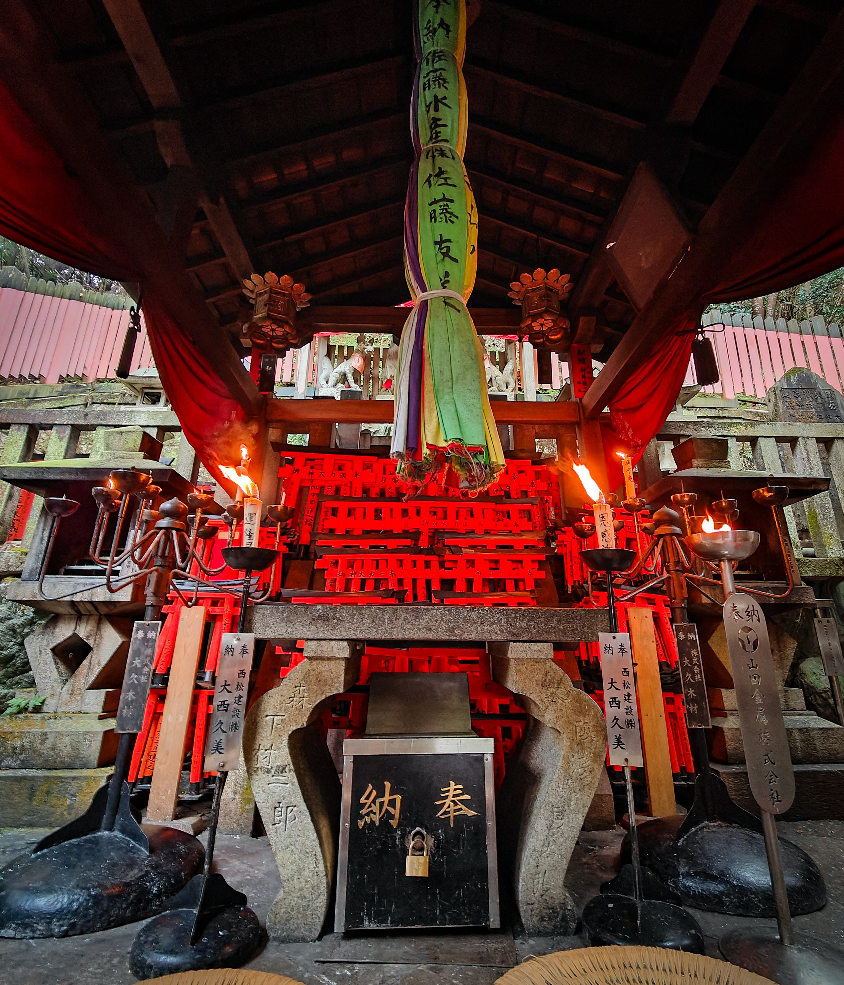 - Fushimi Inari-taisha: raggiungibile facilmente in metro, per me è il templio più bello di Kyoto grazie alle sue oltre 10mila torii rosse (donate da enti e privati per avere un ricordo di sè all’interno) che conducono al santuario più alto. Andateci presto al mattino, perché molto affollato, oppure salite di molto: più in alto arrivate (potete salire anche in cima alla collina) meno gente ovviamente ci sarà. E’ super coreografico anche per i suoi panorami, dato che è shintoista la natura gioca un ruolo da padrone oltre alle porte rosse. E’ dedicato allo spirito delle kitusne, volpi giapponesi, che amo particolarmente per la loro scaltrezza di muoversi tra i diversi mondi. In realtà, all’interno, troverete un sacco di gattini adottati dal templio.