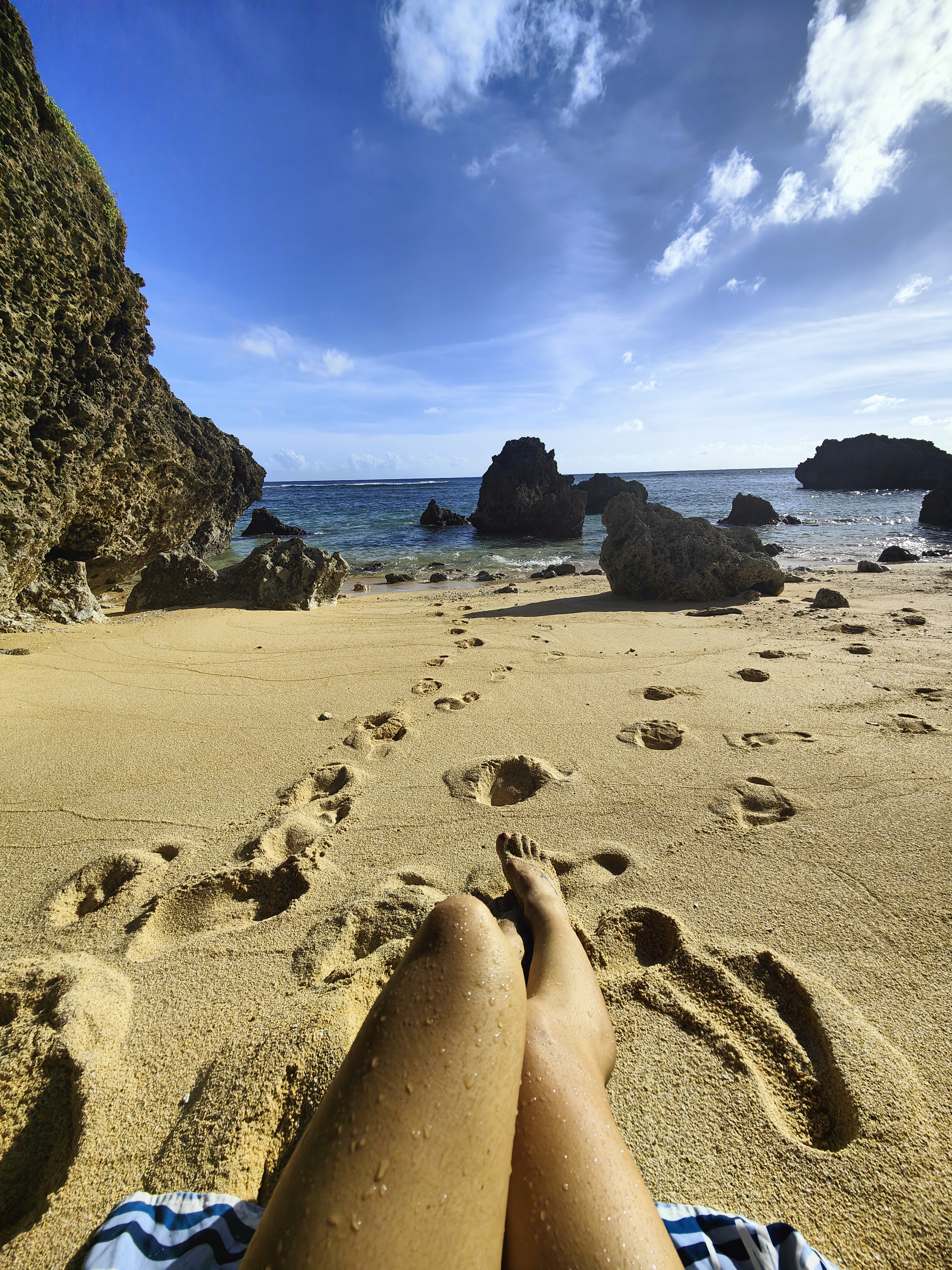 Scogli, sabbia finissima e bianca, acqua cristallina e barriera corallina. In questa spiaggia deserta ho preso il sole anche in topless perché non c’era davvero nessuno. Tenete conto che i giapponesi non amano prendere il sole, quindi al massimo li trovate a fare snorkeling in acqua, ma mentre vi stendente in spiaggia mai. In questo caso c’è anche una piscina aperta in alta stagione, circondata da fiori coloratissimi e tanta vegetazione. Si trova nel lato sud est dell’Isola, vicino alla suggestiva strada che vi conduce a Cape Higashi Hennazaki.