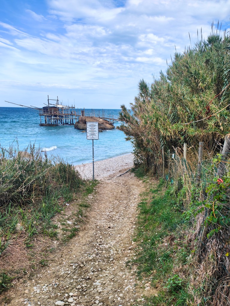 Il primo giorno, ho scelto di percorrere la parte costiera. Sono salita dal Molise fino a Vasto, una cittadina incantevole, dove ho iniziato a pedalare sulla “ciclovia verde”, una lunga pista ciclabile che collega le località marittime dell’Abruzzo, offrendo splendidi panorami sui trabocchi, le strutture di legno un tempo utilizzate per la pesca, ora trasformate in ristoranti e luoghi di svago. Dopo aver superato il faro di Vasto, che svetta maestoso sulla costa, ho proseguito attraversando diverse riserve naturali. Viaggiando su una bicicletta gravel, ho avuto la possibilità di esplorare sentieri immersi nel verde, apprezzando la biodiversità del territorio. Tra le riserve da non perdere, ricordiamo la Riserva Naturale Punta Aderci e la Lecceta di Torino di Sangro, aree ricche di flora che si affacciano sul mare e poi si estendono nell’entroterra.