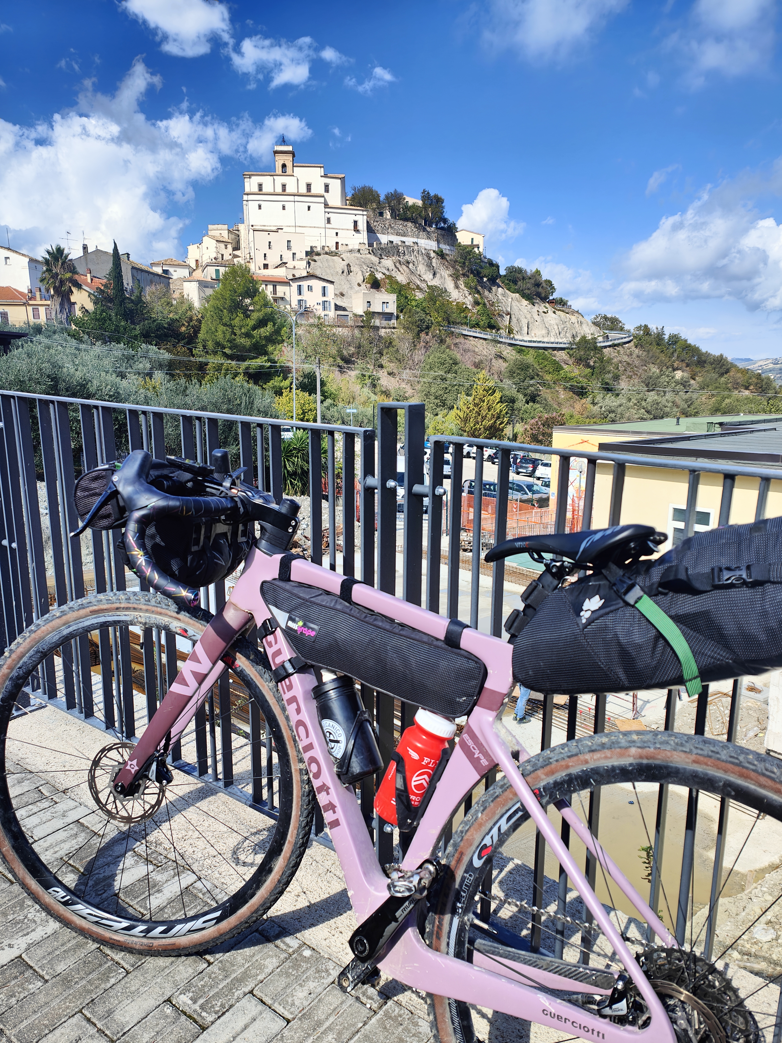 Il terzo giorno, ho percorso una tappa che mi ha portato a “circumnavigare” il massiccio della Majella. Il primo paese che ho incontrato è stato Lama dei Peligni, ricco di storia preistorica e di eremi. La strada, sicura e lontana dal traffico, mi ha condotto fino alla cittadina di Palena, nel cuore dell’area faunistica dell’orso bruno. Lungo il percorso, sono stata circondata da paesaggi mozzafiato, tra boschi e altipiani. Una salita di circa 10 km mi ha poi portato al Valico della Forchetta, un luogo incredibile che offre panorami che sembrano dipinti, prima di scendere verso Pescocostanzo, un borgo medievale tra i più belli d’Italia, e Rivisondoli, un altro incantevole paese che in inverno diventa meta per gli amanti dello sci.