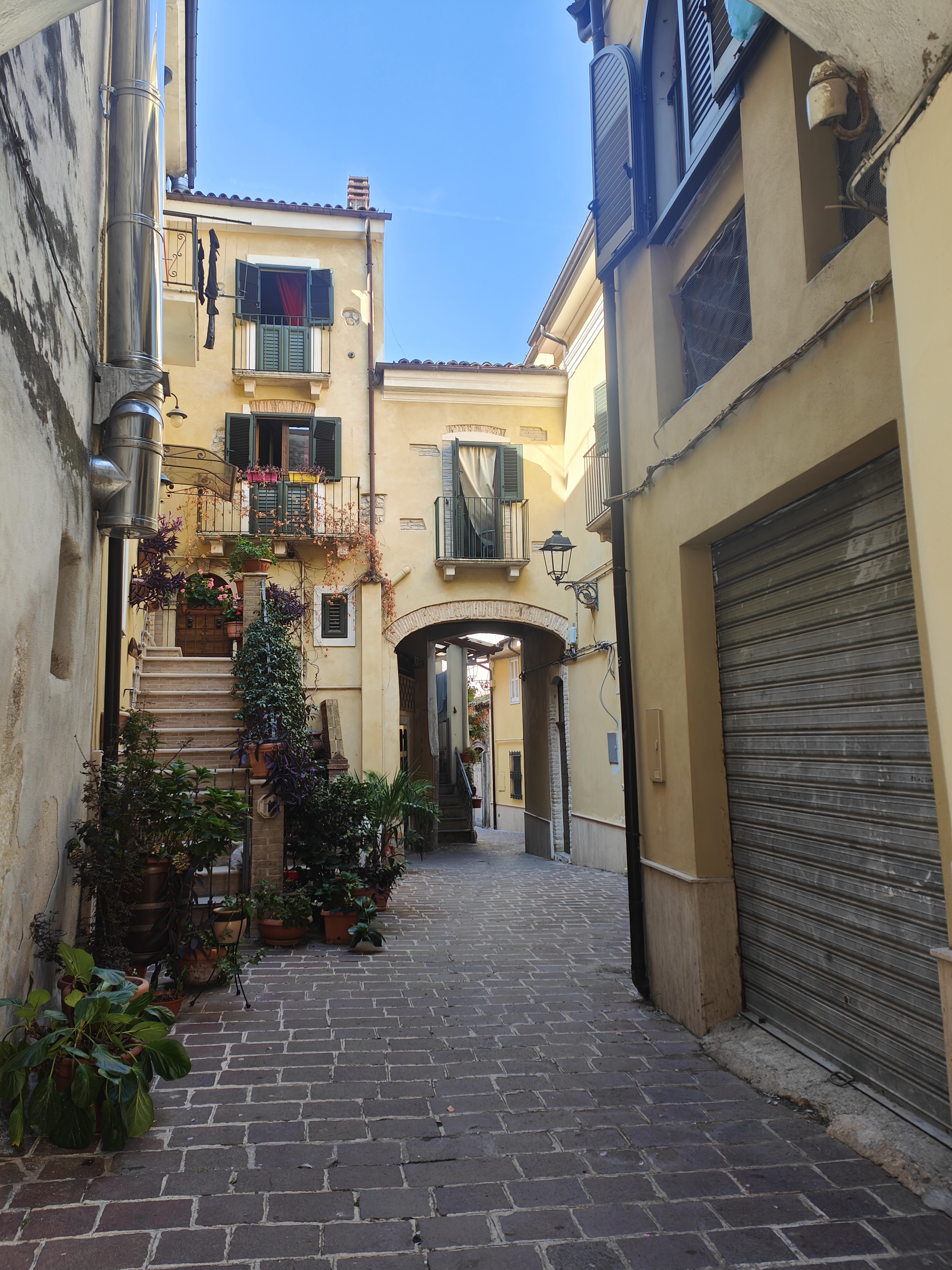Il secondo giorno ho affrontato il Parco della Majella, percorrendo le colline morbide che, attraverso una strada che sale e scende, mi hanno portato a Altino, un borgo arroccato su un colle, e a Roccascalegna, con il suo suggestivo castello medievale. Questi paesini, intrisi di storia e leggende, offrono scenari mozzafiato, tra uliveti e una vegetazione incontaminata. Sebbene siano piccoli, i paesi sono vivi e accoglienti, con i locali che si ritrovano nei bar a chiacchierare e a giocare a carte, in un’atmosfera che richiama tempi lontani.