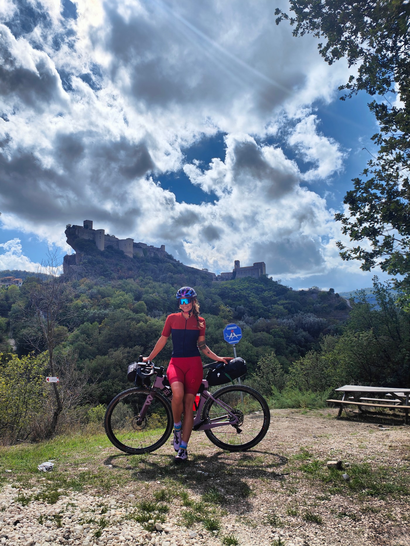Il terzo giorno, ho percorso una tappa che mi ha portato a “circumnavigare” il massiccio della Majella. Il primo paese che ho incontrato è stato Lama dei Peligni, ricco di storia preistorica e di eremi. La strada, sicura e lontana dal traffico, mi ha condotto fino alla cittadina di Palena, nel cuore dell’area faunistica dell’orso bruno. Lungo il percorso, sono stata circondata da paesaggi mozzafiato, tra boschi e altipiani. Una salita di circa 10 km mi ha poi portato al Valico della Forchetta, un luogo incredibile che offre panorami che sembrano dipinti, prima di scendere verso Pescocostanzo, un borgo medievale tra i più belli d’Italia, e Rivisondoli, un altro incantevole paese che in inverno diventa meta per gli amanti dello sci.