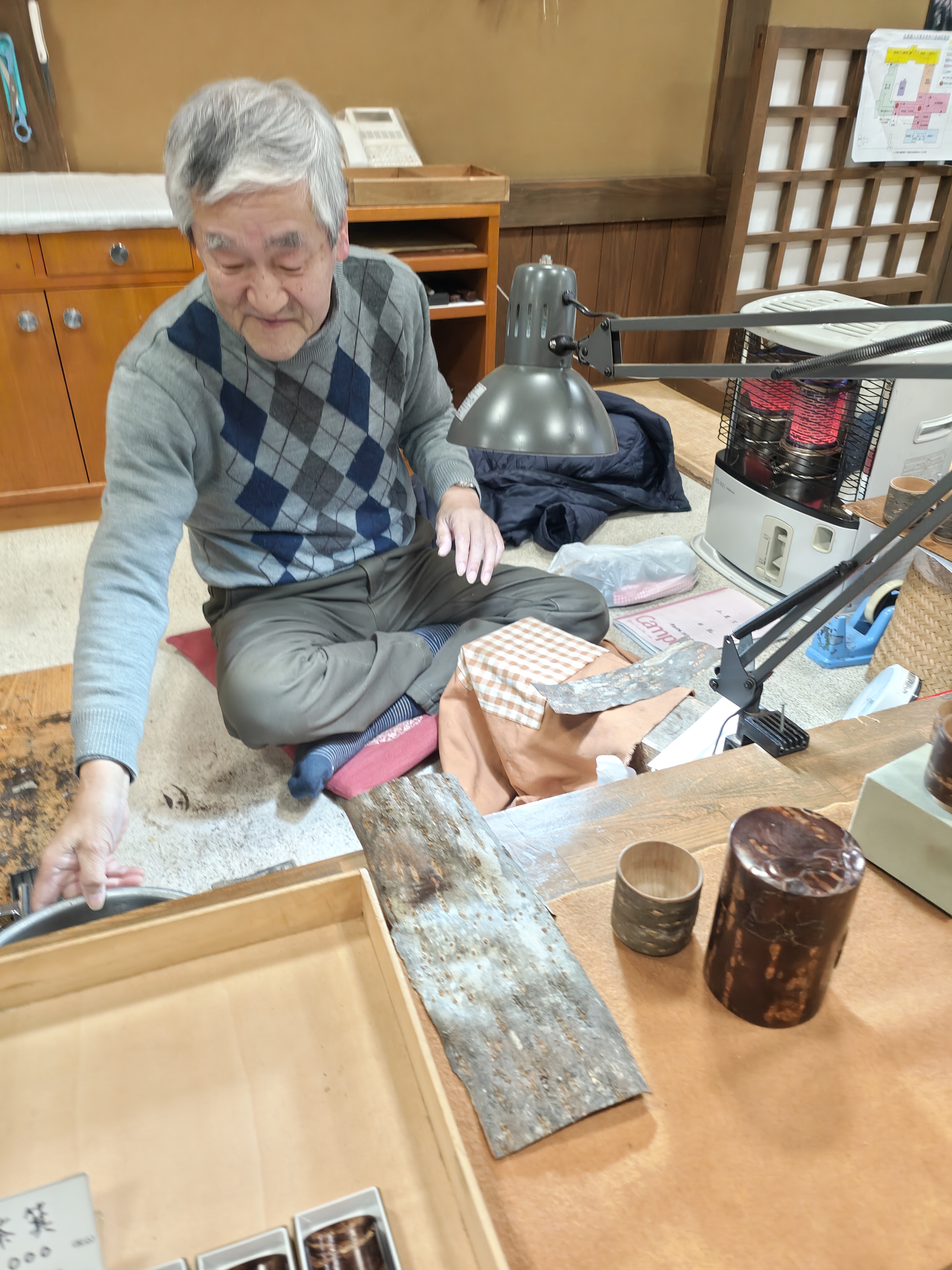 Nel cuore del quartiere dei samurai si trova anche il Kakunodate Kabazaiku Denshokan (Cherry Bark Work Museum), un luogo che racconta un aspetto meno evidente ma profondamente autentico della storia locale. Qui, accanto ad armature, oggetti d’epoca e testimonianze della vita quotidiana, si scopre la lavorazione del kabazaiku, l’antica tecnica che utilizza la corteccia di ciliegio. Nata nel Settecento proprio a Kakunodate, fu sviluppata anche da samurai di basso rango che, con il declino del loro ruolo, iniziarono a dedicarsi all’artigianato. La corteccia, raccolta e lavorata con estrema precisione, viene applicata su oggetti in legno e lucidata fino a ottenere superfici lisce e profonde, utilizzate ancora oggi per contenitori da tè e piccoli manufatti. Vedere gli artigiani al lavoro permette di capire come, in Giappone, anche una fine – quella della classe guerriera – possa trasformarsi in continuità, dando vita a tradizioni che resistono nel tempo con la stessa disciplina e cura che un tempo appartenevano alla via del samurai.